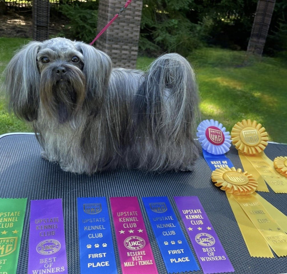 We are so proud of UKC GRCH, IABCA INT CH, Rare Gem Once In A Blue Moon. He is the 2nd recognized UKC Grand Champion Mi-Ki, and the first male Mi-Ki to earn this title. Thank you Judge Earl Acker!